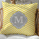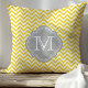Almofada Amarelo e Cinza Chevron Monogramado