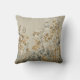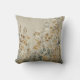 This throw pillow features an ethereal, meadow-inspired landscape rendered in a delicate watercolor style. Stems of wildflowers and clover-like foliage stretch upward against a warm linen-textured background, creating a tactile, fabric-like appearance.