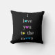 Ame-o à lua…. e traseiro (rosa no preto); Travesseiro decorativo colorido; a parte dianteira diz: eu te amo à lua (com corações coloridos); o verso têm as palavras "e traseiro" dentro de um coração cor-de-rosa desenhado mão!