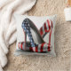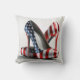 Calçados de salto alto inspirados na bandeira americana são posicionados sobre um fundo comum