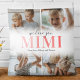 Um travesseiro personalizado para uma avó especial apresentando um modelo de colagem de 4 fotos dos netos, as palavras "nós te amamos mimi" em uma bela fonte rosa gradiente, e os nomes das crianças.