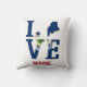 Amor do estado Maine. Principal na fonte vermelho brilhante maiúscula. A palavra amor está preenchida com a bandeira do Estado e a letra O apaixonada é moldada na silhueta do estado de Maine.