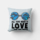 A Tipografia de Beachlover apresenta a citação "Tudo o que você precisa é amor e praia" em negrito letra moderna com palmeira refletindo óculos de sol ilustração aquarela sobre fundo azul claro.
