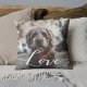 Design de travesseiro de de fotografia personalizada com a palavra "love" numa letra de escrita elegante.