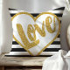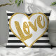 Almofada Amor Preto e Branco Listras de Brilho Dourado