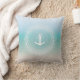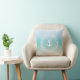 Uma âncora branca numa mandala sobre um fundo abstrato que se assemelha a uma praia e ao oceano. Travesseiro artístico decorativo para sua casa, casa costeira ou hotel de praia.