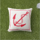 Travesseiro decorativo exterior mostrado em vermelho e branco com um impressão de âncora e com um lado vermelho colorido. Personalize este item ou comprar como está.