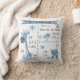 Travesseiro decorativo encantador com imagens de animais da selva em tons brancos e azuis, que pode ser personalizado com os detalhes do nascimento de uma criança. Bonito, animais, selva, azul, para menino, girafa, filhote de tigre, e, personalizar, pássaro, salvar data,