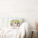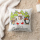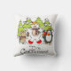 Um travesseiro decorativo de design de Natal bonito e colorido com um urso polar, pinguim e rato todos com cachecóis e skates de gelo com árvores cobertas de neve e texto que diz É Natal!