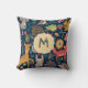 Um travesseiro decorativo para um quarto de madeira ou uma cabana. Marinho azul e bronzeado com um crachá no meio para personalização com sua inicial.