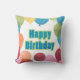 Feliz aniversário! Dê ao aniversariante ou menina um travesseiro de balões de aniversário meticuloso e divertido com nossos balões multicores com nossa textura de assinatura e as palavras Feliz Aniversário em azul e verde. Designs personalizados disponíveis.