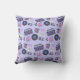 Travesseiro de aniversário de discos de vinil azuis e cor-de-rosa, caixas de expansão, jogos de vídeo e fitas cassetes.