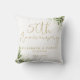 Este elegante presente de almofada de lançamento de aniversário de 50 anos de casamento com flora verde botânica pode ser personalizado com os nomes e datas especiais do casal feliz. Criado por Thisisnotme©