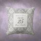 O aniversário do casamento de 25 é um marco: o "aniversário da prata". Este precioso metálico representa força e resistência, e também graça e beleza. Ajude a honrar seu dia especial, dando um presente adorável que será apreciado pelo casal especial. Esse design incorpora a elegância e o refinamento do damasco em tons prateados em uma peça de vintage atualizada para hoje. Todo o texto é editável. Certifique-se de substituir os nomes por aqueles que você deseja incluir.