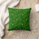 Este travesseiro decorativo tem uma design de Natal de anjos e estrelas espalhados sobre a design num fundo verde.
