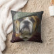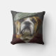 Um travesseiro bonito com o retrato de um velho cão-grande inglês bem vestido fumando um cachimbo. Faria um presente de excelente ou adição à sua decoração.