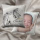 Travesseiro moderno do anúncio de nascimento de bebê com foto de ouro para apresentar seu lindo bebê recém-nascido. A frente mostra uma foto do seu bebê junto com ouro chico e texto preto para o nome do seu bebê e estatísticas de natalidade com uma segunda foto no verso. Uma encantadora lembrança para celebrar sua nova chegada! Projetado por Thisnotme©