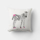Uma zebra rosa-quente e preta, encantada e comemorativa travesseiro de uma menina com uma zebra bebê vestindo um arco rosa bonito e cascos rosa-quente. Personalize este travesseiro de anúncio de nascimento de manutenção adicionando o nome da sua menina, a data de nascimento e as medidas. ©Party