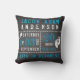 Coxim moderno na moda da lembrança. Características de design do nome completo do bebê, da data de nascimento, do peso, do comprimento, do tempo do nascimento etc. escrito na pia batismal moderna afligida na cor branca e azul no fundo do cinza do quadro. Por favor não hesite contactar-me se você precisar o auxílio com este design.