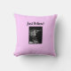 O unicórnio branco bonito no fundo preto enfeita este travesseiro colorido bonito com a mensagem, "apenas acredita", feito nos EUA. Um presente bonito a dar para o amante novo da casa, dos newlyweds, da natureza ou do unicórnio em sua vida! Para mais presentes do unicórnio visite do "o país unicórnio" em SoulMusings.