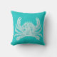 Belo aqua oceânico com um impressão de caranguejo branco. Este travesseiro tem a aparência de burlap sem ser áspero na textura. Escolha entre travesseiros de 20" x 20" quadrados ou retângulos de 13" x 21" no estilo de lista. Selecione 100% de tecido de grau A ou poliéster durável. O motivo oceânico torna este travesseiro perfeito para barcos domésticos, salas com temas náuticos, casas de praia, ou para o balanço da varanda. Apoiado pela garantia Zazzle, criada por Scarebaby Design.