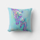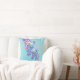 Um girafa da mãe e do bebê nas máscaras do aqua e do roxo. Este travesseiro personalizable caracteriza o nome da sua criança no outro lado em sua escolha da cor da pia batismal e o estilo em a de uma variedade de cores possíveis do fundo.
