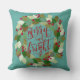 Aqua & Vermelho | Feliz e Brilho | travesseiro Feriado Altere facilmente a cor do plano de fundo, personalize o texto e a imagem se você escolher! Veja travesseiros correspondentes no meu compro!