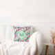 Um padrão bonito de aquarela, cor-de-rosa, púrpura, lacre, verde e amarelo, que representa cacto de pera picante estilizado em flor com flores amarelas. Eu adicionei um monograma em forma de diamante e um modelo de texto de nome em cores correspondentes e fontes sobrepostas contrastantes à frente deste travesseiro para que você personalize com seu próprio nome e inicial. #deserto #suculents.