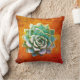 Este travesseiro decorativo apresenta um aqua suculento com uma sugestão de lavanda enquadrada por um fundo arruinado de laranja enferrujada.