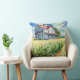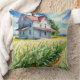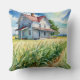 Este travesseiro decorativo apresenta uma imagem aquática de uma antiga fazenda com um telhado vermelho cercado por um campo de milho. Um belo céu azul pendura. É o travesseiro perfeito para quem aprecia a beleza simplista da vida fazenda.