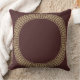 Almofada de Arremesso com Arabescos de Elementos Florais e Bordas Douradas em Vermelho - Este produto ostenta uma borda circular dourada com elementos florais arabescos aninhados contra um fundo vermelho escuro.