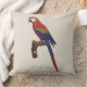A imagem apresenta uma ilustração detalhada da Arara-vermelha (Ara macao), também conhecida como Arara-de-bico-vermelho, elegantemente empoleirada em um galho texturizado. Esta obra de arte é característica do refinado estilo de história natural iniciado por Jacques Barraband, cuja atenção meticulosa à cor e à anatomia trouxe aves exóticas à vida em publicações científicas iniciais. A plumagem vermelha vibrante da arara domina a composição, complementada por faixas impressionantes de amarelo dourado e azul profundo ao longo de suas asas e cauda alongada. Seu bico robusto e curvo e a pele facial pálida, delicadamente marcada com padrões de penas, são renderizados com precisão, enfatizando tanto a beleza quanto a precisão biológica.