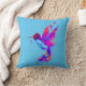 um trabalho de arte de aquarela colorido de um abstrato-beija-flor que levita sobre um travesseiro azul