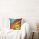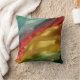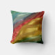 Este travesseiro apresenta uma foto de um tecido multicolor que lembra um arco-íris. As cores sombream de verde a azul a vermelho a amarelo ouro e voltam a verde. O design está em ambos os lados.