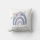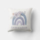 Esta tendência e travesseiro apresenta um arco-íris azul e roxo empoeirado e um buquê de flores correspondentes. Adicione seu nome para personalizar.