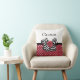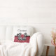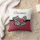 Pegue uma garota com este travesseiro decorativo quadrado de padrão vermelho e branco com um arco chevron preto e branco de tendência e um rosa vermelho-chic. Personalize este retrato vermelho e preto encontra a design moderna, acrescentando o nome da sua adolescente. Imagem impressa plana, NÃO fita e arco de rosetas reais.