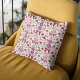 Travesseiro boho e rústico com ilustração desenhada à mão de arcos e flores em magenta.