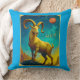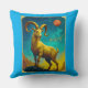 Pillow in a majestic ram standing atop rocky terrain, symbolizes the sun sign Aries. Set against a cosmic backdrop with a glowing red planet Mars, the ram's bold horns and intense gaze evoke strength, courage, and a fiery spirit.