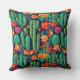 Cacto verde e flores brilhantemente coloridas sobre fundo azul escuro para o fã do sudoeste. Ilumine sua casa com este padrão perfeito que funcionará em qualquer tamanho ou forma de travesseiro.