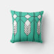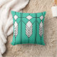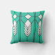 Este travesseiro decorativo tem um design de diamantes e linhas em branco, preto e turquesa, com janela de vidro colorido.