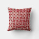 Almofada Art Deco Chinês Fret, Vermelho Escuro e Branco