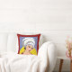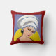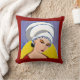 Travesseiro em uma abstrato, moderna, Art Deco inspirou o retrato de uma senhora em vermelho com um turbante branco, contra um fundo de cinza amarelo e azul