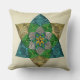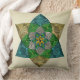 O elegante design original deste travesseiro decorativo almofadado apresenta uma grande mandala em forma de estrela centrada, que a inspira a partir da Arte Deco e das Penas Peacock altamente estilizadas, aperfeiçoadas por técnicas que criam um olhar metálico falso em tons de bronze, turquesa, verde esmeralda e pewter. Repetindo o padrão de mandala atrás.