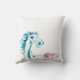 Um cavalo brincando do espírito selvagem no acrílico do arco-íris no tecido mostra o movimento nos cursos da escova para o fluxo e o sentimento. Muitas máscaras dos azuis à água-marinha fazem um travesseiro decorativo bonito, com design em ambos os lados. Arte por Lilly Fluger de lillyarts.com.