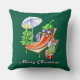 Aqui está um travesseiro decorativo sazonal em forma de quadrado, verde puro, fofinho. Deseje a alguém um Feliz Natal com este personagem de desenho animado irreverente, engraçado, de calcinha do sol. A pimenta queimada pelo sol está se resfriando em um salto entre um guarda-chuva solar, uma árvore curta decorada com apenas uma estrela e alguns presentes embrulhados. O sorriso malicioso dos vegetais sugere um humor festivo e partidário. Criei este desenho com lápis coloridos e tinta no papel. Assim, minha arte é original e única e você não encontrará esse trabalho em nenhum outro lugar.