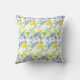 Padrão floral de arte fina com o dragão também conhecido como manteiga e ovos ou linho têxtil com travesseiro de flor selvagem azul. Personalize com seu próprio monograma inicial. Arte original pintada em aquarela por Sarah Trett. Impressão vibrante para trazer um toque de floral azul e amarelo selvagem para o seu quarto. Padrão e design por www.mylittleeden.com