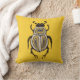 travesseiro de escaravelho abstrato com uma ilustração a tinta representando um besouro abstrato de desenho animado com elementos decorativos em branco, ouro e preto sobre fundo amarelo intenso.