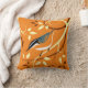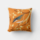 Travesseiros decorativos com arte estilizada de aves de um Nuthatch em espirais de galho e um fundo laranja com padrão de folhas