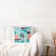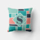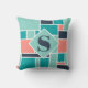 Um design geométrico ousado e fresco, com quadrados e retângulos em diferentes tons de verde lacrimogêneo, rosa coral e azul escuro. O monograma está no meio com destaque em um diamante leve de cor lacrimejante. Personalize o travesseiro decorativo e torne-o exclusivamente seu. Você pode mudar a cor do diamante e do monograma se quiser um aspecto mais contrastante.