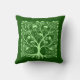 Travesseiro em uma flor estilizada, galho e flor, árvore de design vivo em verde-claro sobre fundo verde-escuro